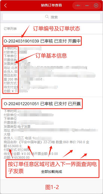 方式二:在小程序“订单查看”选项中查询发票(也可查看各项订单信息)。